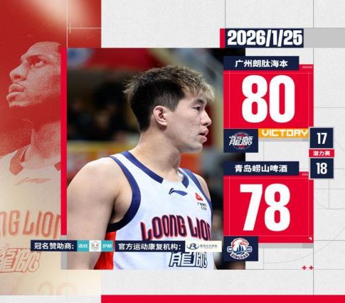 2025-26賽季CBA常規(guī)賽第十九輪客場鏖戰(zhàn)險勝青島,斬獲三連勝廣州朗肽海本 80 : 78 戰(zhàn)勝青島嶗山啤酒數(shù)據(jù)方面:...