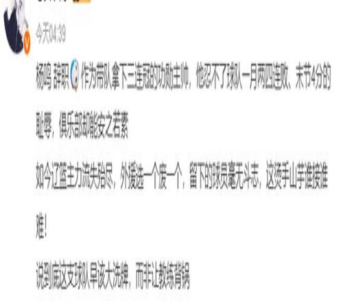 大V們紛紛不滿遼籃管理層的做法,他們認為楊鳴淪為了俱樂部的替罪羊: