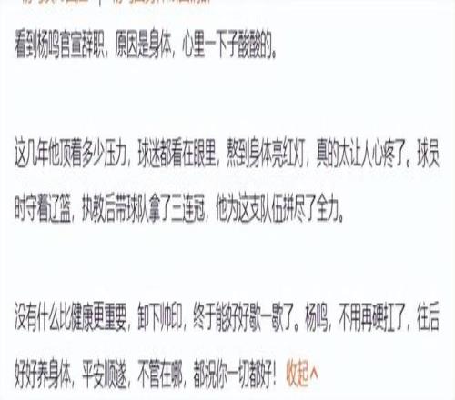 楊鳴指導還在個人社媒上致歉:最近球隊的表現(xiàn)真心對不住球迷的支持,讓大家很失望,我非常內(nèi)疚和慚愧