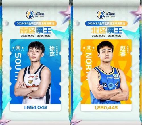 今天下午,CBA聯(lián)賽官方正式公布2026年CBA全明星賽首發(fā)球員票選結(jié)果。廣東隊(duì)后衛(wèi)徐杰以1,654,042票當(dāng)選南區(qū)票王及總票王,北京隊(duì)后衛(wèi)趙睿則以1,280,443票榮膺北區(qū)票王。