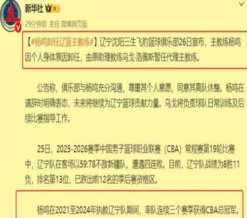 值得一提的是,楊鳴辭去遼籃主教練這件事,就連《新華社》也關(guān)注和報道了,可見楊鳴和遼籃絕對都是CBA的頂流。
