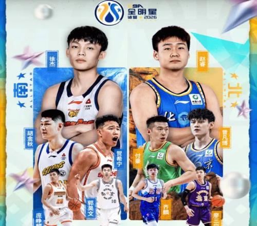南區(qū)首發(fā)球員:徐杰 、胡金秋 、賀希寧 、郭昊文 、龐崢麟 。(徐杰為南區(qū)票王,得1654042票)