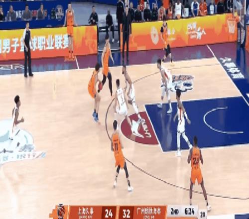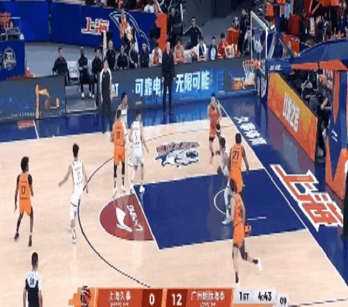 開場后,廣州男籃反客為主,連續(xù)命中3記3分,而上海男籃這套首發(fā)陣容一分未得,以0比12落后。