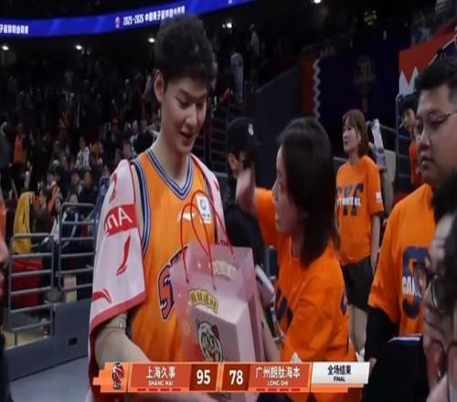 王哲林選擇把這個意義非凡的籃球送給場邊的小球迷,和他一起分享這一珍貴時刻。