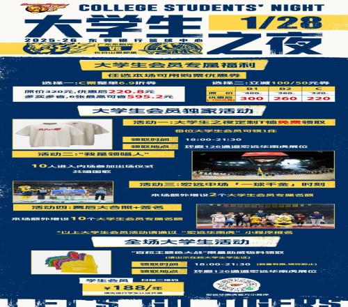 1月28日前瞻I廣東主場戰(zhàn)吉林,大學生之夜重磅來襲!