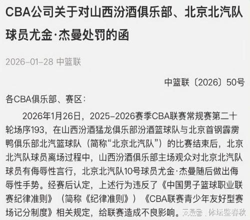 很快中籃聯(lián)開始介入調(diào)查,最終認(rèn)定山西主隊(duì)球迷存在明顯侮辱性言行,違反聯(lián)賽相關(guān)規(guī)定。同時(shí),中籃聯(lián)的公告也指出,在遭遇侮辱之后,杰曼作出了不恰當(dāng)?shù)氖謩?shì)回應(yīng),這個(gè)動(dòng)作同樣被認(rèn)定為違規(guī),對(duì)聯(lián)賽形象造成了負(fù)面影響。到了這里,其實(shí)很多人已經(jīng)預(yù)料到會(huì)是“雙罰”的結(jié)局,但中籃聯(lián)的處罰決定還是引發(fā)了不小爭(zhēng)議。