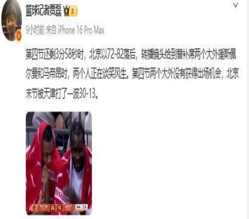 誰(shuí)注意到,北京隊(duì)末節(jié)落后10分有兩人談笑風(fēng)生,球迷:人心散了