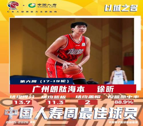兩天后,徐昕當(dāng)選本賽季CBA常規(guī)賽第六周的周最佳球員。