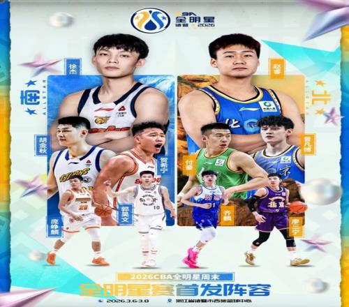 1月26日,CBA聯(lián)賽官宣了2026年全明星首發(fā)球員的投票結(jié)果。南區(qū)首發(fā)球員是徐杰、胡金秋、賀希寧、郭昊文和龐崢...