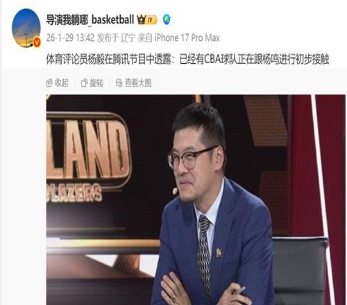 北京時間1月29日,前遼寧男籃主帥楊鳴在騰訊解說NBA間歇期,談到個人未來計劃方面的話題。楊鳴表示:“個人意愿...