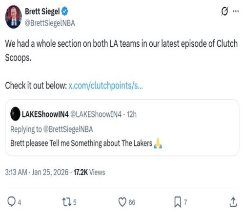 消息來自于美媒《clutchpoints》名記Brett Siegel,他在社媒與球迷互動期間,回答了有關(guān)湖人隊補(bǔ)強(qiáng)計劃的問題。
