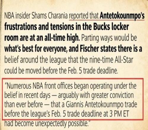 值得一提的是,上賽季交易截止日,發(fā)生了震驚全聯(lián)盟的東契奇交易,但本賽季迄今為止,交易市場極其平靜,如果此時字母哥的交易達成,無疑好像給平靜的湖面投入一顆深水炸彈!