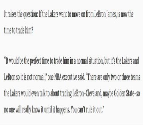 這就引出了一個(gè)問題:如果湖人有意送走勒布朗-詹姆斯,現(xiàn)在是否是最佳時(shí)機(jī)?