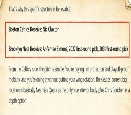 3換1交易方案出爐!場均13+8中鋒加盟凱爾特人,輔佐布朗
