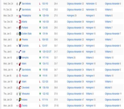亞歷山大本賽季場均33.4分鐘,拿到32.1分4.4籃板6.2助攻1.3搶斷0.8蓋帽,命中率55.9%,三分39.4%,場均9.2個罰球,亞歷山大的打法一直都不夠討喜甚至讓不少美媒厭惡。
