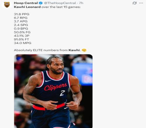 自12月20日以來小卡出戰(zhàn)了15場比賽(缺席了三場),他場均達(dá)到32.1分聯(lián)盟第一,這期間快船18場比賽贏下了其中的15場比賽,快船期間的戰(zhàn)績也是聯(lián)盟第一。