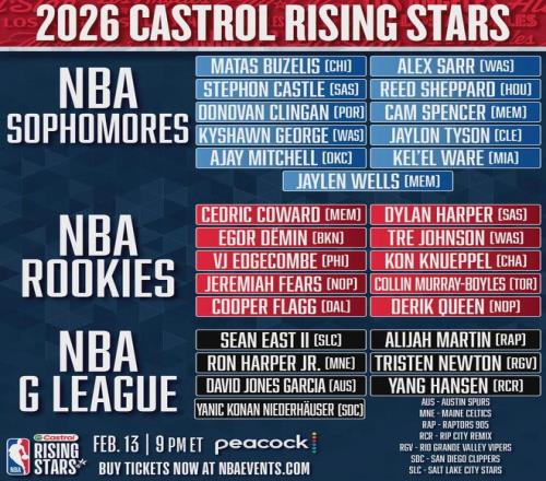 北京時(shí)間1月27日,NBA官方公布了2026年全明星新秀賽的完整名單,其中有21人是一年級(jí)或二年級(jí)新秀,另外7人是在發(fā)...