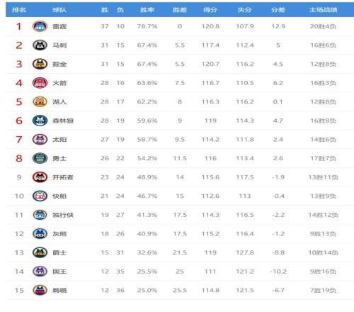 今日比賽后太陽、森林狼排名互換,灰熊、獨(dú)行俠排名互換,其他西部球隊(duì)排名不變。