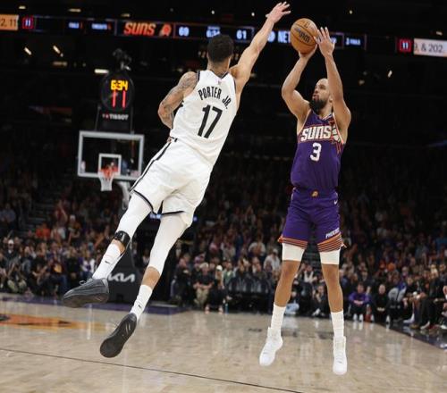 太陽主場迎戰(zhàn)籃網(wǎng),太陽少了布克、杰倫格林、吉萊斯皮,籃網(wǎng)少了克洛尼,上半場比賽太陽取得9分領(lǐng)先,下半場籃網(wǎng)追回5分,最終太陽106-102擊敗籃網(wǎng)。馬威16中13得到27分6板1帽,狄龍15中9得到26分3板3助,籃網(wǎng)方面波特24中15(三分10中6)得到36分5板3助3斷,杰明9中5得到15分5板3助。