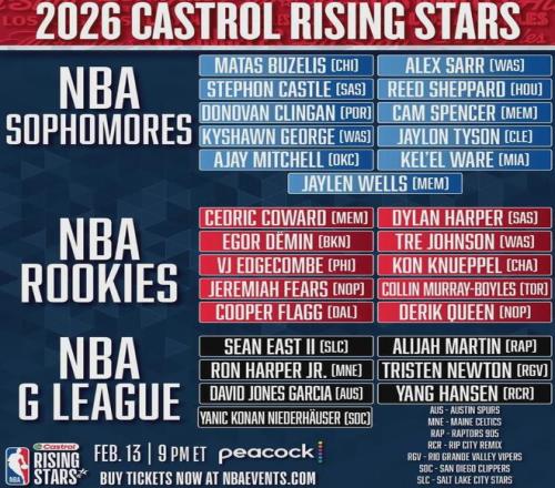 最后還是再提醒一遍,今年NBA全明星新秀挑戰(zhàn)賽在2月14日進行,楊瀚森跟所有發(fā)展聯(lián)盟球員一起被編入奧斯汀·里弗斯隊,記得關注。