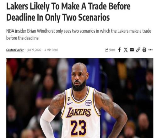消息來自于ESPN名記Brian Windhorst,他在參加播客節(jié)目《The Hoop Collective》中談及湖人在這個交易截止日的計劃時坦言,紫金軍團(tuán)想要交易只有兩種可能。