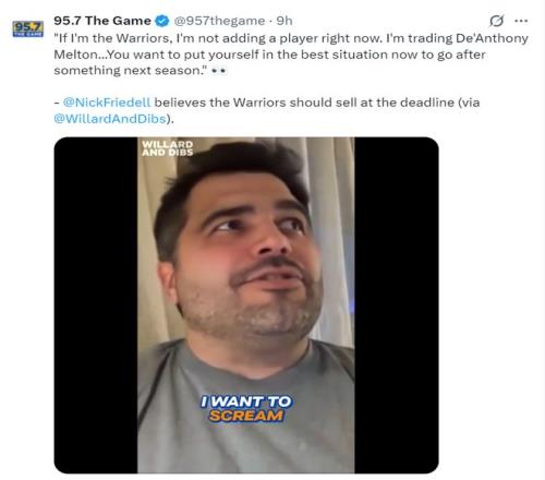 NBC記者尼克-菲爾德談到目前的勇士隊(duì),他表示:如果我是勇士管理層現(xiàn)在我不會去引援,我會交易掉梅爾頓換取未來資產(chǎn),讓下賽季能保持競爭力。