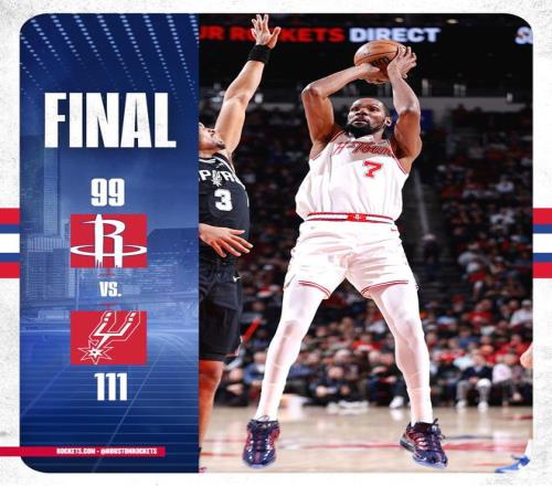 申京、阿門相繼強攻內(nèi)線未果,文班亞馬2罰全中,距離終場不足52秒,烏度卡換上板凳席末端的球員,選擇提前認(rèn)輸,比賽就此失去了懸念。卡佩拉2罰1中,隨后完成扣籃,最終,馬刺以111比99力擒火箭,上演了16分大逆轉(zhuǎn)好戲。休斯頓單節(jié)以13比27落后,火箭末節(jié)投籃23投僅4中,三分2中0,慘遭翻盤。