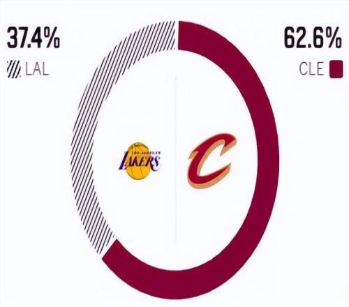 這是兩隊本賽季的首次交鋒,此前的5次交手,湖人2勝3負(fù),算是處于劣勢。賽前,美媒ESPN對本場比賽進行了勝率預(yù)測,湖人勝率僅有37.4% ,劣勢明顯,騎士隊勝率則高達62.6% 。