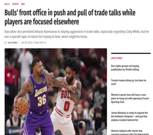 科比懷特就是被兜售的目標(biāo)之一,根據(jù)《芝加哥太陽報》公牛隨隊記者Joe Cowley報道,球隊在交易市場中非常活躍,科比懷特是在交易討論中頻繁被提及的對象。