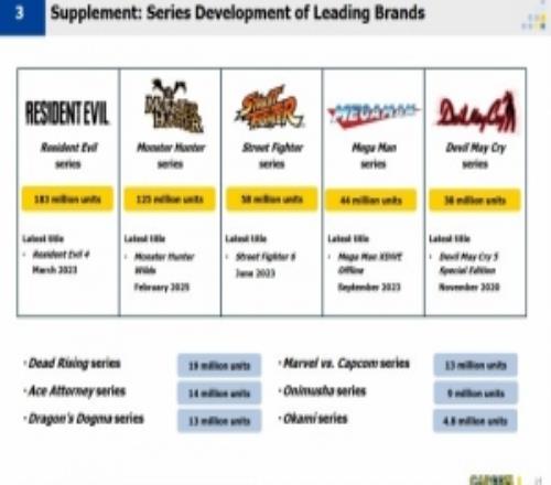 其他系列方面,《喪尸圍城》系列累計銷量1900萬份,《漫畫英雄VS卡普空》系列累計銷量1300萬份,《大神》系列累計銷量480萬份。