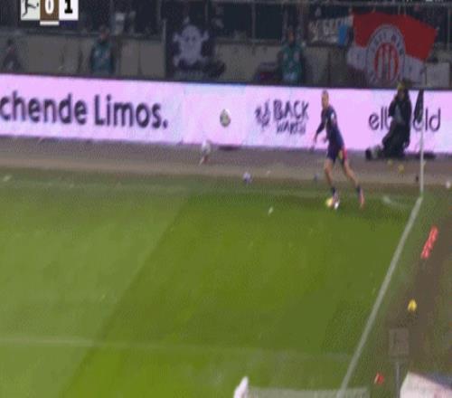 第90+3分鐘,勞姆送點,卡爾斯主罰點球命中,圣保利1-1萊比錫