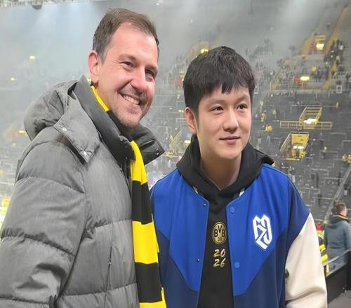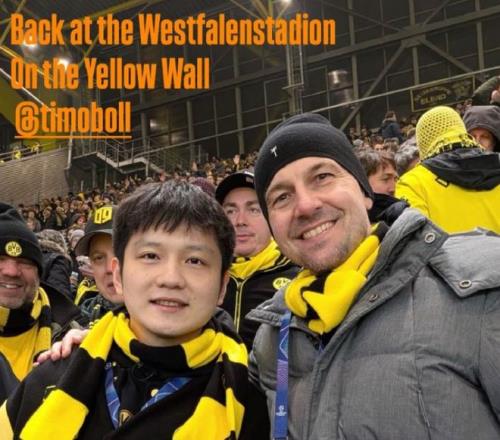 樊振東與波爾再看足球比賽,與多特蒙德主帥合影,喜笑顏開超開心