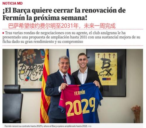 巴薩希望費(fèi)爾明續(xù)約至2031年,成為全隊(duì)合同年限最長的球員之一(霍安-加西亞、亞馬爾、埃里克-加西亞、阿勞霍均是2031年),這體現(xiàn)俱樂部對費(fèi)爾明的重視。