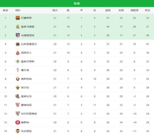 北京時(shí)間1月26日凌晨,西甲第21輪繼續(xù)開打,皇馬率先贏球短暫登頂,壓力全部甩給了巴薩;隨后,諾坎普與萬達(dá)大都會(huì)球場先后奏凱,巴薩、馬競雙雙3-0取勝,藍(lán)紅軍團(tuán)以1分的微弱優(yōu)勢力壓銀河戰(zhàn)艦重新奪回榜首,西蒙尼的球隊(duì)雖然取勝,但是床單軍團(tuán)已經(jīng)足足落后皇馬7分,爭冠主動(dòng)權(quán)已不在自己手中。