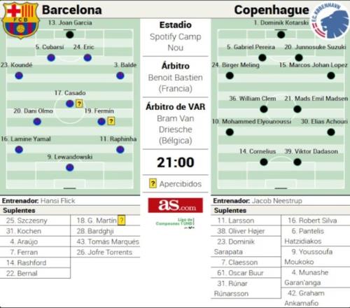 以下是巴薩對陣哥本哈根的可能首發(fā)陣容預(yù)測。巴薩預(yù)計首發(fā)陣容(對陣哥本哈根):