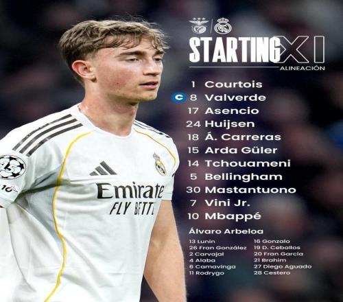 皇馬客戰(zhàn)本菲卡:姆巴佩領銜,維尼修斯、馬斯坦托諾出戰(zhàn)