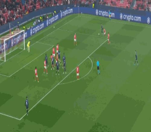 第76分鐘,居萊爾勁射,本菲卡門將將球撲出