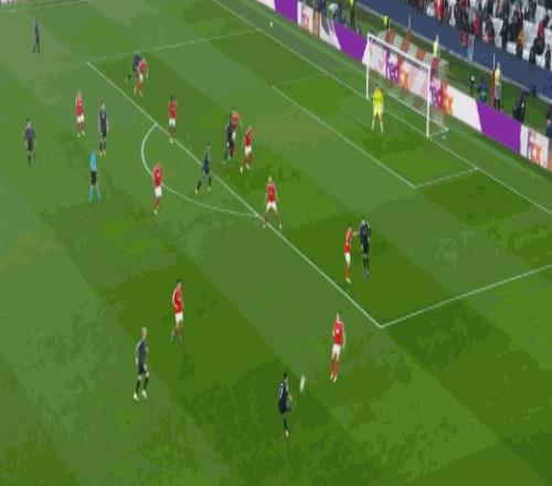 第79分鐘,羅德里戈低射,本菲卡門將將球撲出