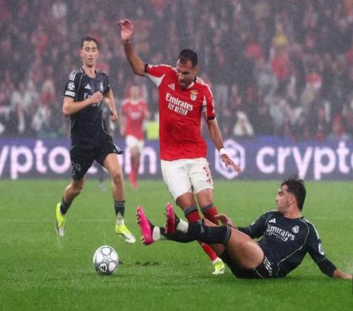 重回故地的卡雷拉斯在上半場便處境艱難,本菲卡的首粒進球正是源于他多次漏人中的一次;赫伊森再次暴露出對抗偏軟、強度不足的問題;而阿森西奧——盡管他曾為姆巴佩送出精彩助攻首開紀錄——隨后卻失誤連連:一次魯莽上搶加滑倒直接導(dǎo)致1-1的失球,被謝爾德魯普輕松過人造就了3-1的比分,最終兩黃變一紅被罰離場。