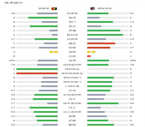 第35分鐘,博洛尼亞球員本哈明-多明格斯助攻劉易斯-弗格森打入一球。