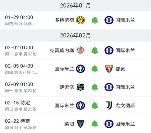 現在,國米一月份只剩1場與多特蒙德的歐冠比賽,對方目前還有直接躋身前八出線的機會,所以應該不會放水,國米想要在歐洲著名魔鬼主場威斯特法倫球場拿分難度相當大,當然即便取勝也很難直接擠進前四,這也就意味著國米將在二月份多踢兩場歐冠淘汰賽附加賽。加上一場意大利杯與都靈的1/4決賽的比賽,國米整個月要踢7場比賽,而且歐冠附加賽還是在國家德比之后進行,這對國米雙線備戰(zhàn)都會有些影響,不過尤文大概率也要踢附加賽,這對雙方來說是公平的。