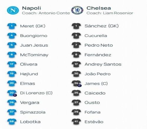 北京時間1月29日04:00,歐冠聯(lián)賽階段的一場對決。那不勒斯坐鎮(zhèn)主場,迎戰(zhàn)切爾西。賽前,雙方的陣容公布如下: 【上...