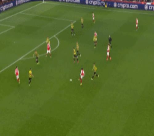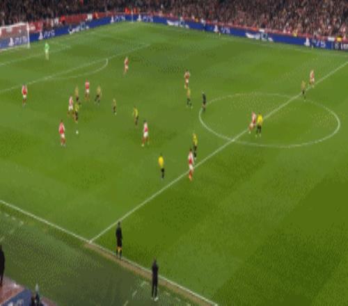 第36分鐘,馬丁內(nèi)利后點(diǎn)推射破門,阿森納3-1領(lǐng)先