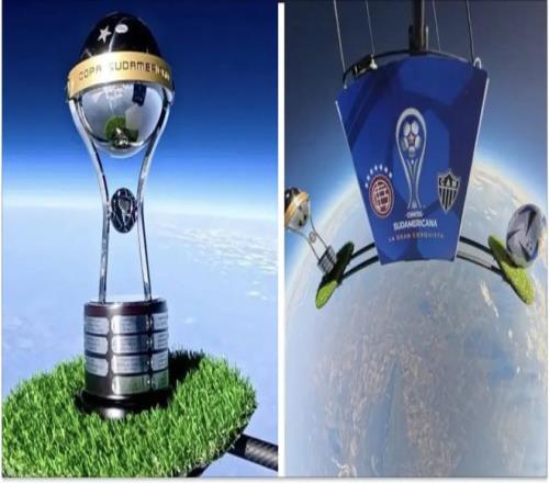 去年11月21日南美杯決賽前夕,南美足聯(lián)將南美杯獎(jiǎng)杯、比賽用球和印有決賽兩隊(duì)拉努斯、米涅羅競技隊(duì)徽的廣告牌,用氣象氣球送上太空后再順利回到地面。當(dāng)時(shí)南美足聯(lián)的營銷文案是南美杯決賽的獲勝者,將舉起曾“遨游太空”的冠軍獎(jiǎng)杯。