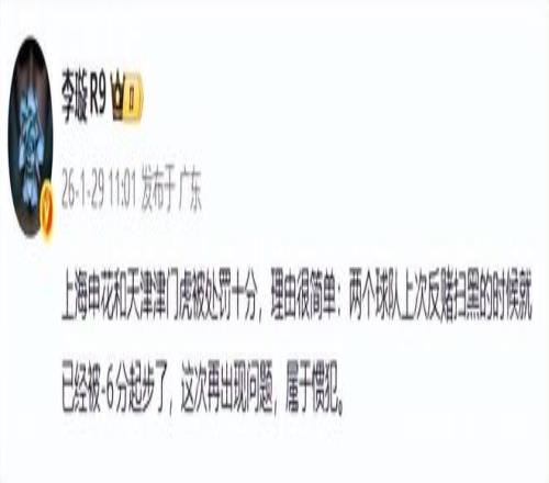 博主:上賽季中超前五只有成都沒事,國安被罰了5分