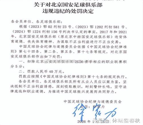 當(dāng)時,俱樂部在個別事項上存在明顯偏離職業(yè)足球基本準(zhǔn)則的行為,在競技層面之外,試圖通過不正當(dāng)方式獲取額外利益,這種操作既違背了體育道德,也觸碰了行業(yè)底線。基于這些問題,中國足協(xié)對北京國安作出了明確的處罰決定,新賽季相應(yīng)職業(yè)聯(lián)賽積分被扣除5分,同時處以40萬元的罰款。