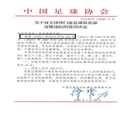 周四,中國足協(xié)正式公布受處罰俱樂部名單。天津津門虎被罰10分,王棟、鄧小飛則遭到終身禁足。在足協(xié)公布第二份...