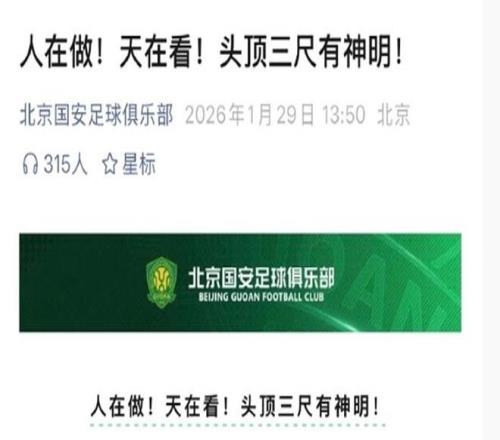 緊接著了,北京國安在官微上發(fā)文:“人在做,天在看!頭頂三尺有神明!”。此舉欲言又止,大有想說什么又什么都沒說的味道。