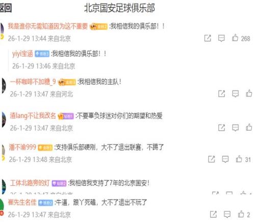 破防!北京國安球迷:我相信我的主隊(duì),大不了退出不踢了