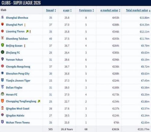 中超好看了!遼寧鐵人是中超身價(jià)前6名中:唯一沒被扣分球隊(duì)!